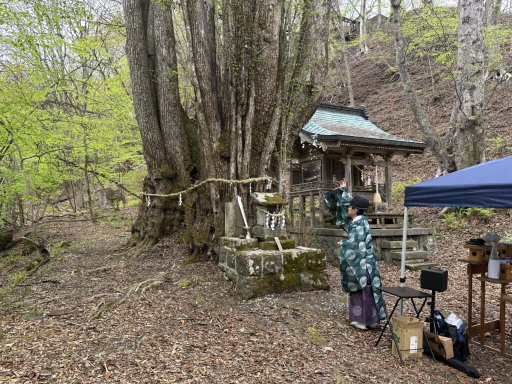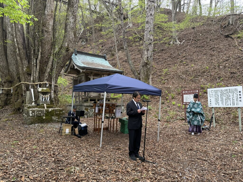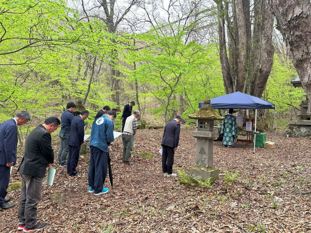 村、剣桂神社氏子総代、甲子高原行政区長が参列して南湖神社宮司中野目さんにより神事を執り行い、